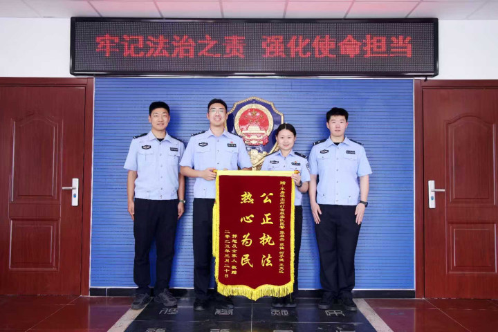 张启杰(右2)和同事成功破获梁某盗窃案。受访者供图