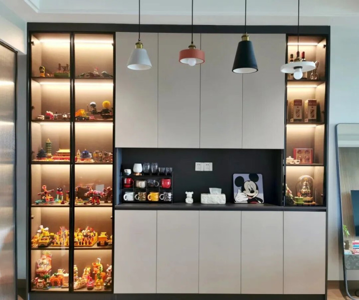 这里帮主教大家一个藏八露二的收纳法则,即把家里80%的物品藏进柜子里,保持视觉空间的整洁性,20%的物品展示出来,例如常看的书籍、摆件、手办等等,既方便日常拿取,又能体现主人品味。