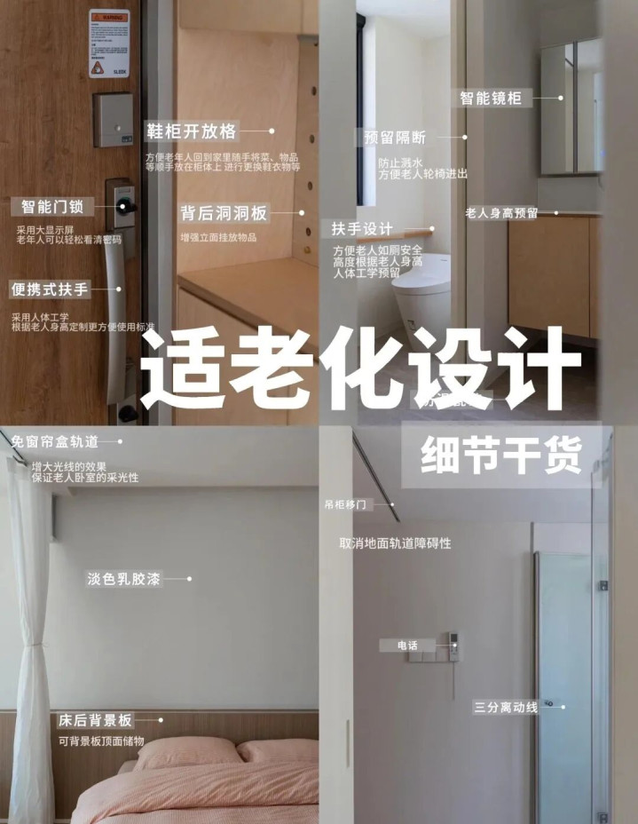 1.无障碍设计,全屋无高低差的门槛,就连卫生间都是做的无挡水条设计,老人小孩行动自如,不用担心磕绊。