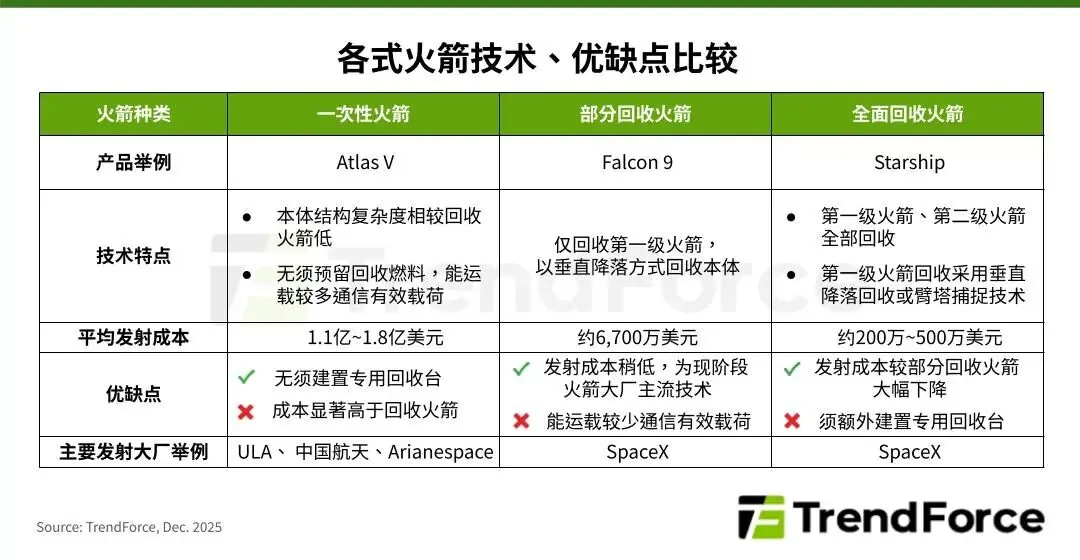 IT之家 12 月 22 日消息,TrendForce 集邦咨询今天发布的最新研报指出,目前一次性火箭的平均发射成本落在 1.1 亿至 1.8 亿美元(IT之家注:现汇率约合 7.75 亿至 12.69 亿元人民币),部分回收则是 6700 万美元左右。